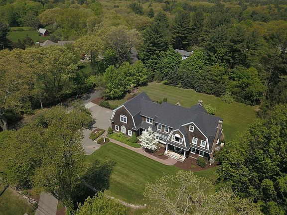 Move into this stunning Nantucket shingled-style home! Shows like new construction w quality craftsmanship, exquisite moldings, circular flow and architectural details throughout, all overlooking a beautiful meadow. Dramatic 2-story foyer opens to the formal L/R and spacious D/R complete with butler's pantry. Gourmet kitchen with eat-in space, honed granite counters and coffered ceilings surround the grand island great for entertaining. You'll live in the over-sized F/R canvased with natural light, floor to ceiling fieldstone F/P, vaulted ceiling & views of the blue-stone patio and outdoor FP. Sun-filled 2nd flr has 4+ bdrms w new carpet plus the master suite with a luxurious bath & his and her walk-in closets. Finished 3rd flr is the perfect au pair/guest suite. Relax watching TV, entertain behind the built-in bar or workout in the exercise area all in the LL. Storage throughout. Situated on the Wellesley line with easy highway access. Country elegance with the #1 schools in MA.
