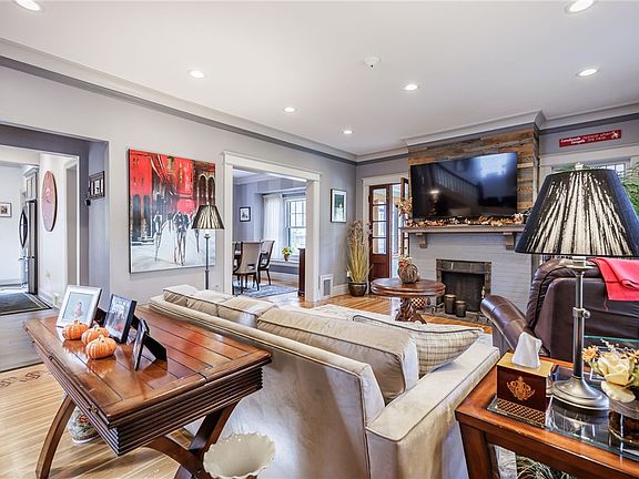 The character and charm continue to the 2nd floor with 3 spacious bedrooms - glass doorknobs and trimmed wall space bring the vintage charge married with current trends like modern remote-controlled light. The sparkling large full bath has been completely remodeled with marble counter, double sinks, a new tub surround and heated floors. Off the rear bedroom is a heated space framed and plumbed for whatever you want to complete - would make a great primary BR bath, 2nd floor laundry, walk in closet or even a 2nd floor porch - you decide! The finished attic gives you additional flex space to work or play in & has sprayed in insulation & air conditioning; together with the partially finished basement brings this home to over 2000 square feet of living space to enjoy!