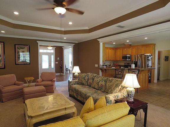 Beautiful Home in Crosswinds Subdivision has a crisp new look with NEWLY PAINTED EXTERIOR, light gray with black shutters/door and white trim. Located on a lovely 1.22 acres with a covered patio for entertaining. Many wonderful features include an open floor plan with 4 bedrooms and 3 bathrooms. A spacious foyer entrance opens left to a formal dining room with beautiful detailed moulding and tray ceilings. Through the foyer is a large great room with gas fire place that is open to the kitchen. A spacious kitchen with a sit down bar features stainless steel appliances, and a dining area, with added cabinetry and work desk. A large master suite with tray ceilings includes a master bath with double vanities, walk-in closet , private toilet, garden tub and tiled walk-in shower. Another awesome feature, all the bedrooms has access to a private bathrooms. A water softener, irrigation system and gas grill included.