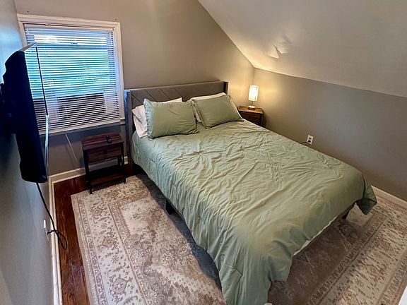 This cozy fully furnished 1-bedroom, 1-bathroom apartment is located on the third floor of a well-maintained home and features a warm modern farmhouse design throughout. The bright living area includes neutral tones, wood accents, comfortable furniture, and updated finishes that create a clean, welcoming feel. The kitchen comes fully equipped with new non stick pots and pans, open shelving, newer appliances, and essential cookware, making daily living simple and convenient.