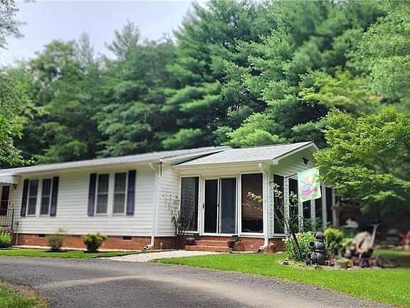 Located just 4 mi to I-77 Modular with 4 extra buildings stick built on site for your hobbies, plus 2 sheds for ATVS, yard tools/mowers etc. A Hicks water stove is housed in building with power. Tanning room has 2 windows with ac unit. 3 BR/2 Ba has handicap accessible shower in Master with French doors off the side to sunroom has 2 sliding glass doors and gas heat/AC unit. This home truly has a lot of to enjoy. Covered/screened porch with jacuzzi sits just outside the great room A covered deck with swing/gate for pets, 2 car garage offers overhead storage leads to breezeway at back door. Come sit by coi pond with faux creek supply keeping the fish happy. Take a hike to the Spring/creek through the woods. Entertain yourself+relax while embracing the nature-wildlife all around. 5.2+/- ac to explore as you find the creek were sellers have fetched spring water. A wood burning fireplace should keep you cozy as winters roll in. Sellers need until Sept 1st to move. Firm Does NOT hold EM.