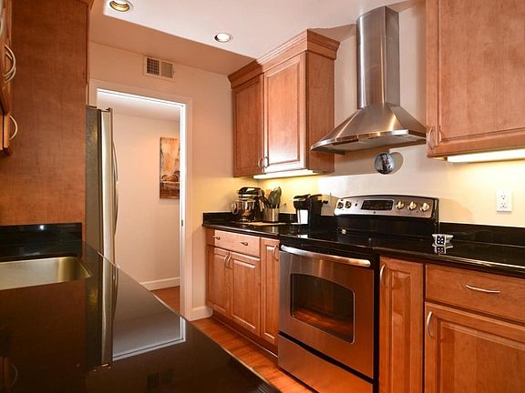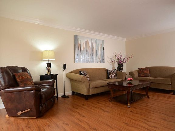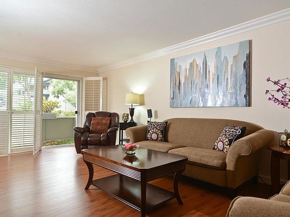 Beautifully updated unit featuring wood laminate floors, granite counters, maple cabinets, pull-out spice rack, GE Profile appliances in kitchen, updated bathroom with newer vanity and shower. Light and bright with double pane windows and crown molding. Fantastic location walking distance to the shops and restaurants of the "Village at San Antonio", close to Cal Train, Schools , carport, extra storage, secured building and a community pool, Rent includes water, electricity, gas and garbage service.