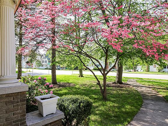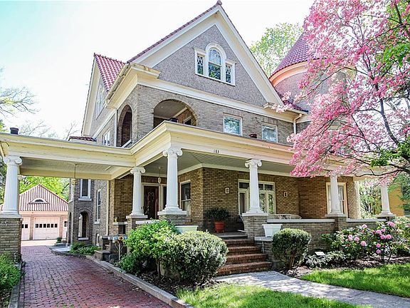 Sophisticated & unique listing tucked away in the Village of Webster! This historical 1919 home was originally one of the first homes to be built on East Main Street! Many of the details of the original design has been preserved over the years, such as the vibrant Spanish Clay roof & the domineering Queen Anne's tower! The exterior features a paver driveway under a stylish portico, meticulous landscaping, & towering trees! Inside the home you will take a step back into history w/a full butler's pantry complete w/window access for pass through service into the formal dining rm, a stately formal sitting rm that spotlights 1 of the 2 wood-burning fireplaces & a rounded sitting area in the tower! A grand staircase features a delicately designed stained glass window that is simply stunning! Upstairs you are treated to 5 full beds, 2 full baths, a full-sized unfinished attic w/stair access & so much more! Don't miss out on this one of a kind opportunity to own a piece of Webster history!