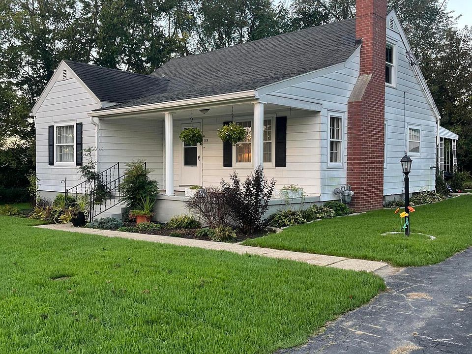 Welcome to this Charming 2 bedroom, 1 Bath, Living room w/wood burning fireplace, & an Eat-in Kitchen home that sits at the end of the street with a great view of farmland. It offers a covered front porch & a back patio with lots of privacy. It has a full unfinished walk-up basement for storage overflow or a man cave. The unfinished attic area is used for storage but it could be finished for more living space, it has a full staircase to it. There is a 1 car detached garage, asphalt driveway, & sidewalk. Kitchen stove, 2 refrigerators or woodstove in the garage do not remain. The back fence is treed and offers privacy, close amenities such as Kroger's but tucked away from the main hustle and bustle, it's a must see. Near intersection of Hwy 55/60. Priced to move!