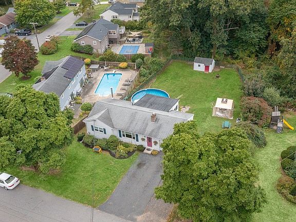 Move right into this 8 rm, 3 bdrm, 2 full bath ranch w/finished walkout lower level & 1 car garage in wonderful neighborhood w/seasonal views of the reservoir! Lovely living rm w/4 picture windows & ceiling fan opens to eat in white kit w/stainless steel appl, ceiling fan & new fl! Lg dining rm w/pellet stove, picture window & hardwd fl! Master bedrm w/hrdwd & Large closet & 2nd bedrm w/hrdwd under carpet & dbl closet! Bright & open walk out lower level w/Lg family rm w/new carpet, wood stove & Lg windows, lg dining area w/2nd refrig, 2nd dishwasher, sink & new laminate fl! 3rd bdrm w/new carpet, full bth & Lg closet right outside bdrm entrance, great for in-law, guest suite or teen suite w/ext access to huge fenced in backyard w/above ground pool, patio & huge shed! Updates incl picture window in din rm 2022, central air & gas heating in 2021, gas water heater 2021, windows approx 2012 & architectural roof approx 2007. Close to shops, schools, train & mins to MA Pike & all major rts!