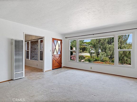 The large living room is light and bright with oversized windows. Here too is a stacked stone corner fireplace. Down the hall are the three bedrooms. The share a full bath. In one room sliding glass door leads out to the spacious backyard and a variety of fruit trees including a mature avocado tree. Here there is plenty of room for planting, recreation & relaxation.