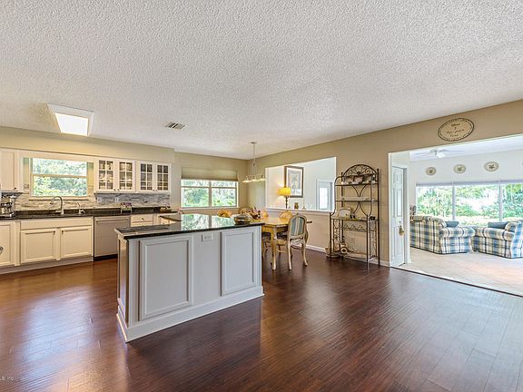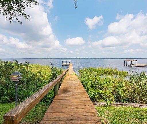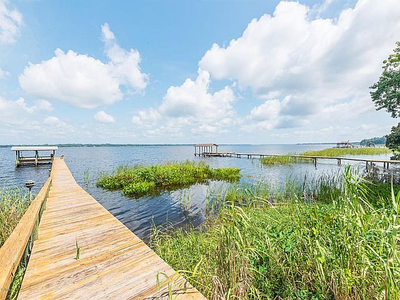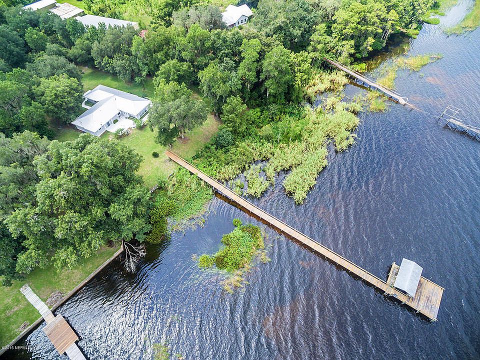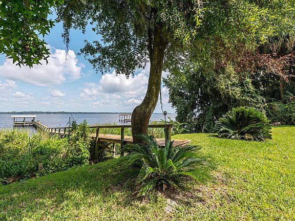 PRICE REDUCED...Secluded riverfront estate home is situated on 3.25 lush tropical acres. completely private with magnificent views of the St. Johns river. 300' updated dock with boathouse and lift. 10' average depth off the dock. The stunning home features a large family room with gas fireplace, a newly updated island kitchen with energy star appliances, a custom entertainment area with dry bar, open concept living/dining and a spacious game & media room. New roofs, new A/C system,finished to a high standard. Detached covered parking with workshop, fish pond, and working greenhouse add to the appeal of this unique property.