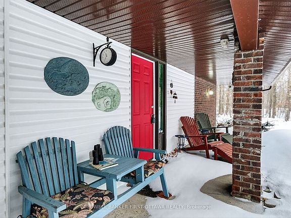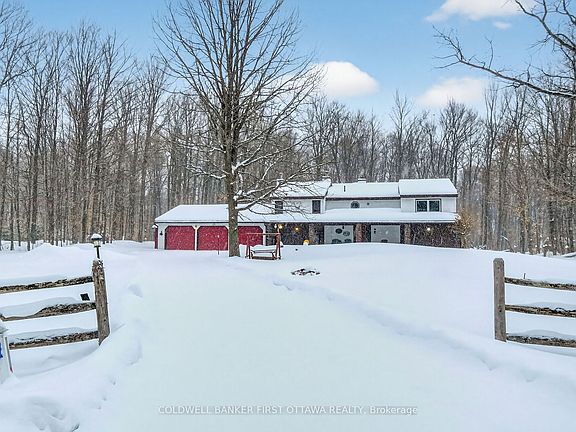 Nestled on a serene wooded lot, this charming country home offers a unique blend of eclectic design and modern amenities across multiple levels. Featuring a large country kitchen, you'll find it well-equipped with pull-out cabinets and the vintage appeal of an Elmira Heritage Collection cookstove-perfect for culinary enthusiasts! The home boasts a large dining room providing a warm atmosphere with stunning views of the surrounding woods. The sunken living room is a cozy retreat, leading seamlessly to a screened porch, ideal for enjoying tranquil evenings. With two generously-sized bedrooms, the house also includes renovated bathrooms. The luxurious shower includes a rain shower head that mimics the soothing sensation of a gentle rainfall. Additionally, dual-zone shower heads allow for personalized water temperature and pressure adjustments, creating a spa-like experience right in your home., There are two other bedrooms that offer flexibility and space for family or guests. The informal family room is centred around a welcoming wood stove, creating a perfect spot for gathering during colder months. With convenient access to the garage, the property also presents the potential for an in-law suite or an excellent income opportunity. Whether you're seeking a peaceful retreat or a versatile family home, this property has it all. Located just 10 minutes from Ottawa and 10 minutes from Carleton Place, experience the charm and functionality of this delightful country home today!