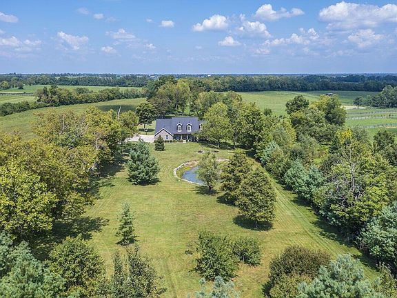 Picturesque setting surrounded by horse farms makes this stunning home a most desirable property with postal address in Fayette County and located in Bourbon County on 3 acres with a gated entry., pond and more. Home features 1st floor primary suite, large great room open to an awesome kitchen w/granite tops & stainless appliances, 2nd level offers 3 bedrooms and a full bath, patio with outdoor kitchen, 2 car attached garage and a newer 4 car plus detached garage with expandable walk up attic. Numerous amenities. Incredible opportunity.