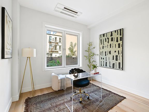 Residence 2 is a stunning garden duplex that seamlessly blends comfort and versatility. The main level features an inviting open layout with a spacious living room, a separate alcove, primary bedroom and full bath. The expansive lower level features a convenient half bathroom and a versatile layout that can be tailored to suit your needs, whether as a home office, recreation room, guest suite, or a combination of all three. Both levels offer direct access to a beautifully landscaped 750sf private garden, ideal for outdoor relaxation and entertaining.
