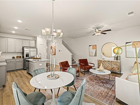 The townhome includes a spacious owner's suite with double vanities, an oversized walk-in closet, two additional bedrooms, a full bathroom, and a half bathroom.