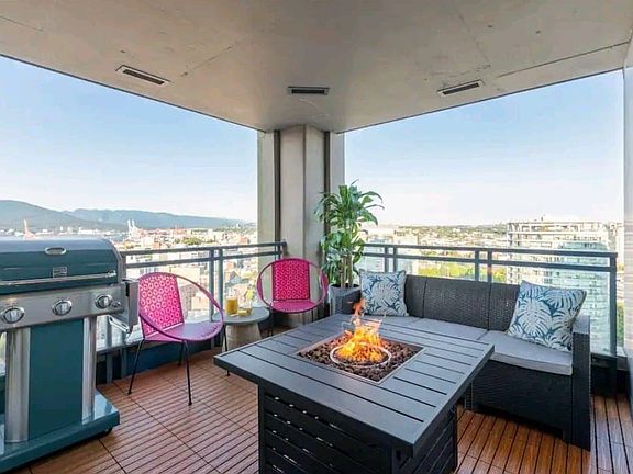 Million-Dollar Views in the Heart of Vancouver! Enjoy breathtaking 260° panoramic views of city skylines, Northshore Mountains & Burrard Inlet. Short term rental allowed! It's both a luxurious residence and a rare investment opportunity. Inside, floor-to-ceiling windows flood every room with light. The open-concept design features engineered hardwood throughout with abundant storage, seamless flow, and elegant finishes perfect for entertaining. A large 2 bed 2 bath + den CORNER unit with covered patio, this home offers comfort and style. Amenities include: indoor pool, hot tub, sauna, fitness centre, games room, private gardens, and on-site caretaker. Save on utilities with heat, hot water, and gas fireplace included in strata fee! Just steps from SkyTrain, Costco, T&T, and vibrant dining!