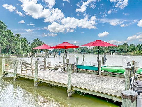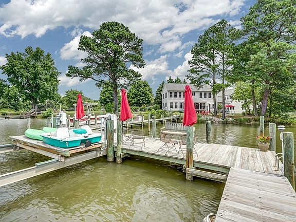 Majestic setting overlooking Dividing Creek. This charming 4 bedroom home further offers a garage apartment complete with bedroom, bathroom and living room that was added in 2017. The home is perfectly situated to maximize views and has a park-like setting. The home has a sizable dock which features TWO boat lifts (10,000 and 25,000 lbs) and the neighborhood also has a community dock and boat launch. The modern kitchen features an island, granite counters, stainless appliances and hardwood flooring adorns the first floor. Upstairs you will find a huge owners suite featuring Pergo floors, a large walk-in closet, and updated bath finished in soothing gray tones. There are three additional bedrooms and a hall bath on the second floor. There is a large screened porch in the rear of the home offering outdoor space where the views can be enjoyed. This is a spacious home with a thoughtful plan. It will cater perfectly to your large family and/or guests. New HVAC.