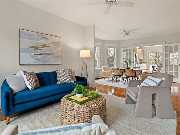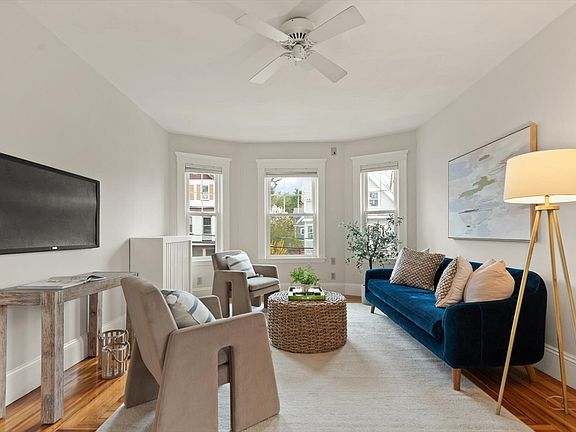 With its generously proportioned rooms, high ceilings, and period touches, this 2-level condo in a fantastic West Cambridge location has been lovingly maintained and upgraded, yet retains the charm of a classic 2-family home. Adjacent to Buckingham Field and across from Fresh Pond Reservation, there’s plenty of open space just outside your door. Step inside and you’ll immediately feel at home: the huge eat-in kitchen with sliders to the back deck, the dining and living rooms with graceful bow windows, and a separate office with loads of built-ins are all warm and inviting. Also on this level are a half bath and hall closet. Upstairs are 3 bedrooms, full bath with double sinks, and storage. The walls were just painted and the floors were just refinished. Upgrades include 9 year old roof and back porch, and Harvey replacement windows throughout. The high efficiency Navien combination boiler/water heater was installed in 2018, and the exterior was recently painted. Come see!