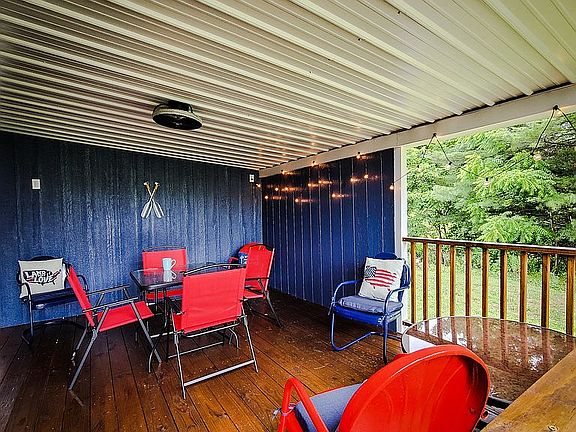 We converted this doublewide to real property in 2018 and finished remodeling it in 2023. Nearly everything has been upgraded such as new roof, new vinyl, new windows, new exterior and interior doors, new jetted tub, laminate flooring throughout, new front and back porches, brand new heat/air unit installed in 2023 and much more. The outside boasts a spacious fire pit area and an outbuilding that is also included in the price. This property is turn key and all furnishings, extra bedding, linen, etc go with the property includes all appliances, supplies, fully equipped kitchen, etc. The only thing that does not stay is the front porch swing and personal items in the closet and outbuilding. All other outdoor furniture stays. The driveway is extra large and was designed to accommodate multiple large boats and guest appreciate that.