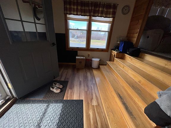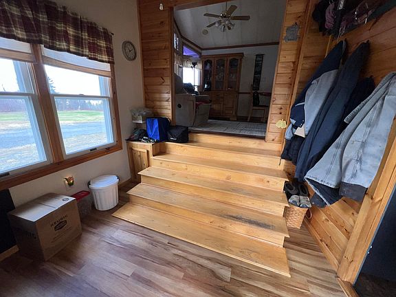 Beautifully custom-built unique home located atop 7 acres of land overlooking Canada and the Saint John River. This home has been wonderfully modified and turned into a 2-bedroom home with the greatest views in the Valley. This really is a must see to take in all the great features it has to offer. The primary bedroom has a beautiful bath, large closet and a patio door going out to a 18x20 foot deck. The front living area has three glass sliding doors allowing for the wonderful breeze of the valley and the sounds of nature to fill the home. An insulated concrete slab (24'x40') sits ready for a garage, shed or gazebo. 400 plus feet of road frontage with apple trees, sugar maples, flowering cherry and low maintenance perennials galore all on this beautiful property with a private backyard. ATV and Snowmobile trails located right off the back of this lot allowing for easy access! Would make a great vacation home or airbnb with all the wonderful features! Land has enough property to allow for a huge garden, farm or even would allow for horses! Beautiful area for sledding, fishing or exploring Canada. Schedule a viewing today as this unique, light, bright and cozy! Must see! *PLEASE TAKE NOTE - STAINLESS STEEL FRIDGE IN PICTURES IS GONE A WHITE FRIDGE IS NOW IN ITS PLACE, ALSO PELLET STOVE IN PICTURES IS NON-FUNCTIONING WILL BE REMOVED PRIOR TO PURCHSE.