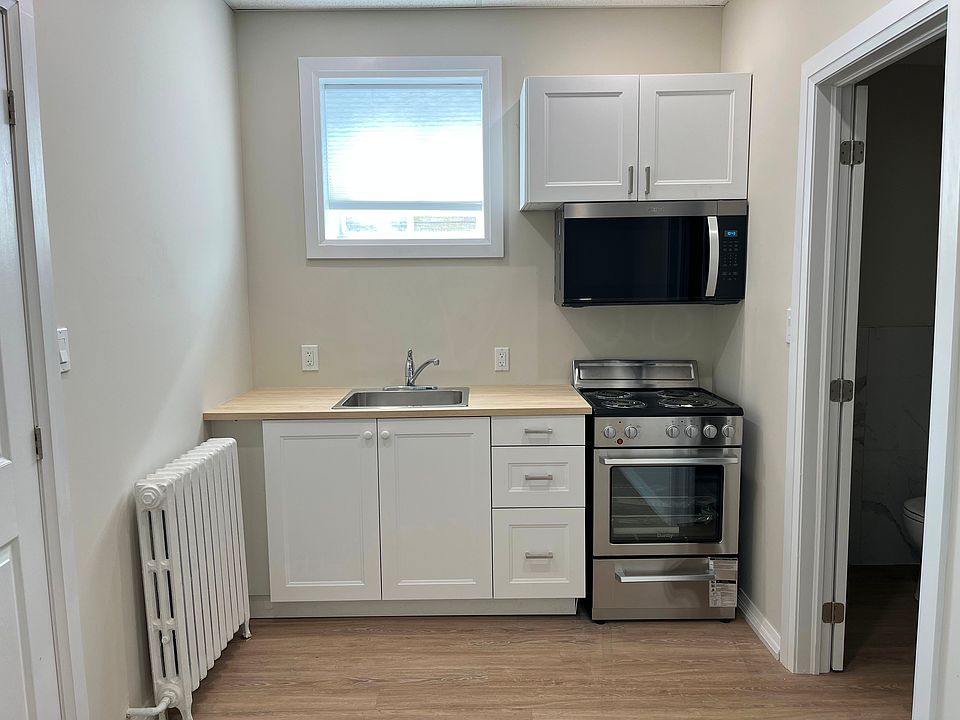 Just completed total renovation in qiuet building in a vrey quiet area of Oakville and just acoss from a large park with swimming pool. Close to downtown with shopping, entertainment and transportation. All materials are high end and tastefully decorated. Shower is fully tiled with large format ceramic tiles. All flooring is luxusy vinyl. Appliances re brand new, stainlees steel with above-the-range microwave. All utilities are included. Available October first, or later