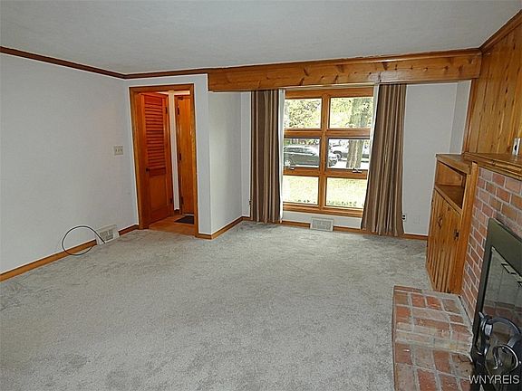 Open House on Saturday, October 25th from 1 to 3 pm! Located just outside the Village of Williamsville & close to all conveniences, this vinyl sided ranch features foyer with hardwood floor, living room with fireplace (NWTC) flanked by built-ins, eat-in fully equipped kitchen with corian countertops, full bathroom with ceramic tile floor, 3 bedrooms, full basement with rec room with fireplace (NWTC) & glass block windows, recent furnace & central air, 150 amp electrical panel installed in 2025, and new roof (complete tear off) was just installed in September 2025. This home is situated on a large lot with extra wide driveway to 2.5 detached garage. Showings begin immediately with any offers due on Tuesday, October 28th by 11 am. Some photos are virtually staged.