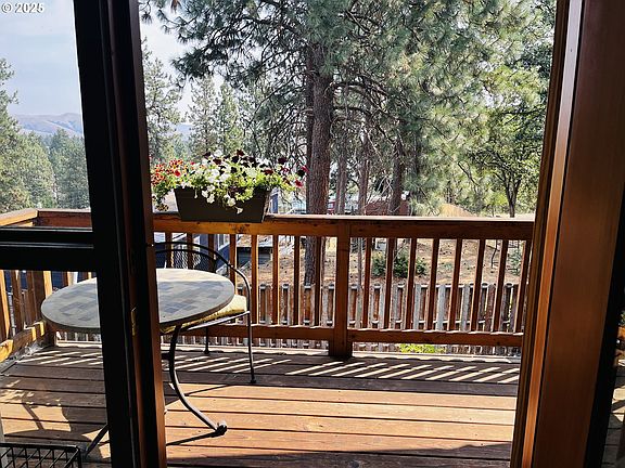 Relax on the deck and take in the view of the lake through fragrant pine trees! Live full time or rent out this renovated home as an income producing property! If you are looking for a turn-key vacation home, all kitchen appliances, garden tools, and some of the furniture stay! Double insulated doors provide seamless entry from the master bedroom to the upper deck for peaceful mornings watching the wildlife. The lower deck wraps around the home, maximizing enjoyment of the beautifully landscaped, large yard. Soak in the hot tub while you enjoy the sounds of wildlife and the lake view. Tall fencing protects the yard and garden from deer, and there’s a hot tub for stargazing on cool nights. A second bedroom and bath are located upstairs, while the third bedroom and bath are downstairs for your convenience. An ADT alarm system can be connected to the gated entry to the property, and all windows and doors, ensuring privacy and security. An ADA ramp is installed for entry. While a modern heat pump heats and cools the home, the temperature controlled pellet stove provides another option for cozy winter nights. A newer, two story tuff shed can be used for storage of recreation gear or used as an office space, while another shed provides space for lawn equipment or other supplies. In addition, the deck was just pressure washed and sealed in 2024. Convenient location for playing on the water- less than a block away from the waterfront picnic area and access to the water for your canoe, kayak, or SUP! Pine Hollow Reservoir is stocked with large trout at least two times per year, and is a close drive from Rock Creek OHV area, Mount Hood National Forest, and multiple hunting areas for game, birds, turkey, etc. Boasting 300 days of sunshine per year, only a 2 hour drive from Portland and Bend, and 30 minutes to Mt. Hood, there is something for everyone! Motivated sellers, price drop from $375K!