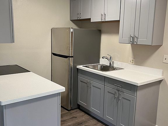 Newly remodeled upstairs apartment, with new laminate wood flooring, refrigerator, range (stove/ oven), brand new cabinets and countertops and remodeled bathroom. One covered parking space and plenty of street parking. Renter responsible for PG&E, owners pay for water and garbage. One year lease No pets or smoking allowed.