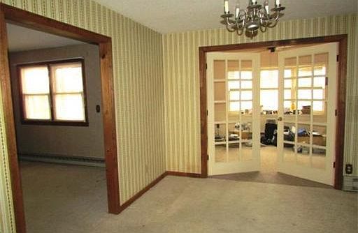 Great 2 BR ranch with cathedral sun room addition, fireplaced family room, dining room, large kitchen loaded with cabinets and counter space plus convenient first floor laundry. Finished interior stairs lead to walk-out basement for future finishing potential! Updated roof, updated electric panel plus hobbyist's dream over sized garage! All this plus owners have been told they have enough frontage with public water stubs for possibility of at least 2 additional lots. Please note new tape survey attached to listing as document showing position of house and garage on lot.
