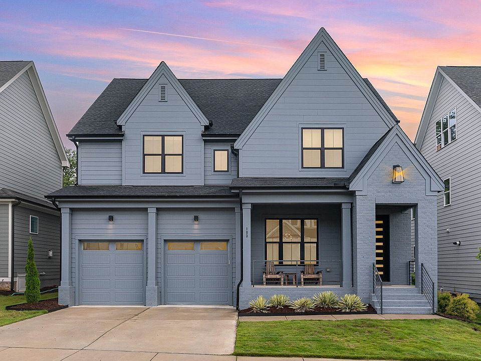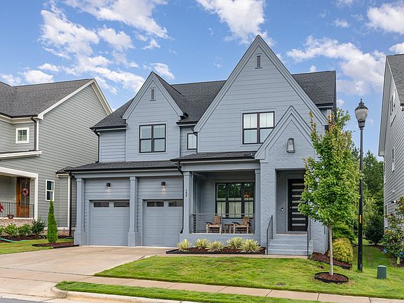 This 2021, 4-bedroom, 5 1/2 bath Homes by Dickerson, home spans three thoughtfully designed levels. Each bedroom includes its own full bathroom—privacy when you need it, convenience built in. A first-floor bedroom and bath welcome guests or adapts as life changes. The open kitchen centers the home: custom cabinetry, upgraded appliances, walk-in pantry with room to stock up. Large windows bring the outside in, Hunter Douglas shades let you control the mood and light. Work from the dedicated office. The flex room becomes what you need—morning workouts, kids' headquarters, creative space. The third-floor wet bar sets the scene for movie nights or catching up with friends. Step outside to the saltwater hot tub. Woods maintained by the HOA frame your view, trails start nearby. The 2-car garage includes a 220V outlet for charging. Three levels of space that work the way you do, with everything from nature trails to neighborhood gathering spots just outside your door. Briar Chapel brings the amenities: water park, clubhouse, resort-style pool, 20 parks, sport courts, plus shops and eateries within the community.