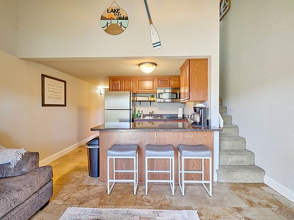 You would have total access to the lake with a swim ladder and boardwalk right out your back door. This place offers nothing short of amazing and peaceful lake views from your private balcony.
