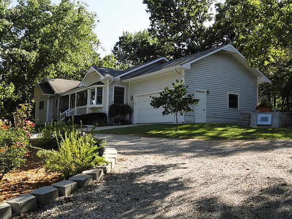 Beautiful 1 level home on just over an acre. 3 bed 2 bath with attached 2 car garage and additional detached 2car+ shop. Covered front porch and large rear deck in a park like setting. Large bedrooms and formal dining room. Lots of attractive landscaping and custom storm shelter for your safety. HVAC 5 years old. Very well maintained home on 7 lots with garden areas and plenty of parking accessible from two streets. Close to town and marina on a county maintained road. Just a short distance to boat launch and swimming within the subdivision.