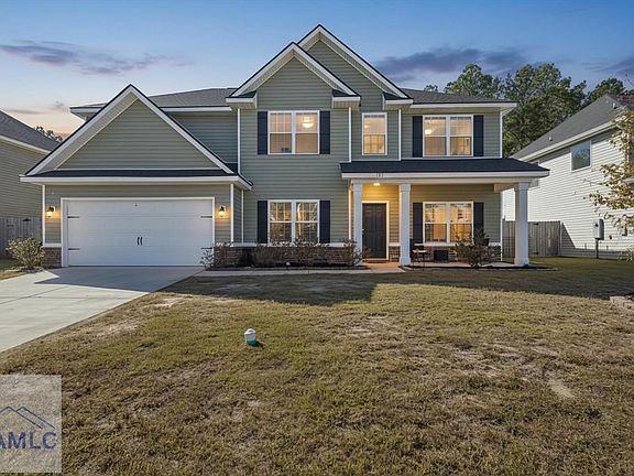 UP TO 3% CLOSING COST CONTRIBUTION!!! Welcome home to Tranquil South, one of Flemington's most desirable communities just minutes away from multiple Fort Stewart gates. Built in 2021 and nestled on just under an acre, this home offers the feel of new construction with the benefit of established landscaping and thoughtful finishes throughout. Step inside and be welcomed by a grand foyer with soaring ceilings, flanked by a formal living room and a formal dining room featuring a coffered ceiling and elegant wainscoting. The spacious family room offers a cozy fireplace and open sight-lines into the breakfast area and kitchen, creating the perfect setting for everyday living and entertaining. The kitchen is beautifully appointed with dark walnut shaker cabinetry, granite countertops, tile backsplash, and stainless steel appliances, accented by brushed nickel hardware for a clean, modern touch. A guest bedroom and full bath are conveniently located on the main level, ideal for multi-generational living or hosting visitors. Upstairs, you'll find three generously sized guest bedrooms, a media/bonus room, the laundry room, and an additional full bath. The primary suite is its own retreat with 10-ft ceilings, a spa-inspired bathroom featuring dual vanities, a separate shower and garden tub, water closet, and a large walk-in closet. Out back, enjoy a privacy-fenced yard and a covered patio, perfect for morning coffee, summer grilling, or quiet evenings outdoors. This home truly has it all -- space, design, and location. A must-see!