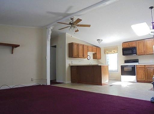 This 28 x 36 home located in Heritage Village offers a large open kitchen/Dining/Living area with vaulted ceilings, a full bath with walk-in shower and laundry area, and two bedrooms. Two outside storage sheds are perfect for extra storage. One is located right off the carport for year round use without going out into the elements. The tree lined backyard offers some privacy for outside activities, dining, or just visiting! Heritage Park is a highly desirable 55+ park that is well maintained and pet friendly. Park fees include taxes, water, sewer, trash removal, maintenance of common grounds, and plowing of roads, Park approval is required for new owners.