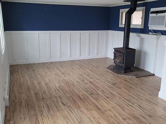 This cozy home boasts two bedrooms with one bath, an updated kitchen with a bright breakfast dining nook, living room with a wood burning stove for those chilly days and a dining room for intimate gatherings. The circular driveway provides convenient access and a welcoming entrance. The one-acre lot offers plenty of outdoor space for gardening, play, pets maybe even a horse or two; with a large portion fenced in, there is privacy and sanctuary for pets, kids and peaceful relaxation. Basement offers 896 sq ft of potential, come check it out, it won't last long! **Do not walk property without agent & appt.**