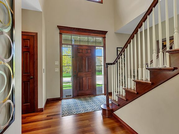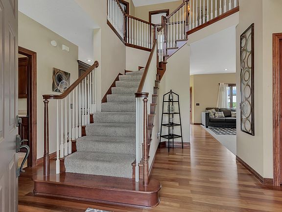 PRICE REDUCED $30,000! Unique architectural touches make this home a must see! Maple woodwork throughout & approx. 3,900 SF of inviting & comfortable living areas. Gourmet kit w/cherry cabinets, granite counters, lg center island w/eating bar, black appliances, & cherry hdwd floors. Back mudroom area with ½ bath, & WI closet w/built-ins. Informal DR w/hdwd floors overlooks the great room. Lg 2-story foyer. MF den w/French doors & sitting area + a lg laundry room w/washer, dryer & an abundance of built-in cabinets. 3 BR's, a full bath, & a lg bonus room on the upper level. Master suite w/French doors & a sitting area w/turret. Master bath w/a whirlpool tub, separate shower, & WI closet. 2 add'l BR's & a full bath on the upper level. LL is great for entertaining w/a sitting area, FR, a BR, & bath. Plumbed for in-floor heat but no boiler installed. Heated tri garage w/floor drain, underground sprinkling, paving stone patio, hot tub w/new cover, fenced yard, wrap-around deck, & new roof!