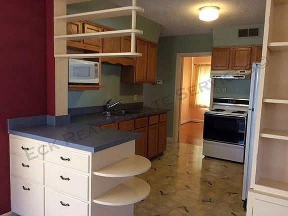 Funky 1940's house on corner lot in East Lawrence neighborhood. House has washer/dryer in the unfinished basement, central heat and air, off street parking, decorative fireplace (not usable), detached storage garage and we will be taking over the lawn care. Tenant takes care of all utilities and snow removal. Approved pet possible with additional pet rent and pet deposit. *Wall colors are a little different than what are in pictures. 8/3/23 to 7/28/24.