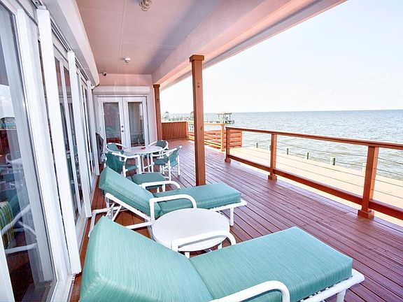 Bay front Beauty! Gorgeous home on Bay Shore Drive in Key Allegro. Shows like model home offering breathtaking Panoramic Aransas Bay views throughout! Huge back deck for entertaining and enjoying the bay views, and enjoy great fishing off back deck and private pier. This home is a Coastal Paradise with an open floor plan, spacious living/dining and large kitchen w/gas stove, granite counters, eating bar for 6, wine refrigerator, plentiful storage & cabinetry and eye catching coastal blue backsplash. Bonus room could be used for a study or additional sleeping area. Numerous windows all along the water front to capture views/natural light. Split bedrooms with deck off master bedroom. Luxurious Master/Master Bath with double sink, walk in shower, travertine counters and walk in closet. Inviting entry, tropical landscaping and attractive interior/exterior design. Immaculately cared for with electric storm shutters and spacious garage space for storage.