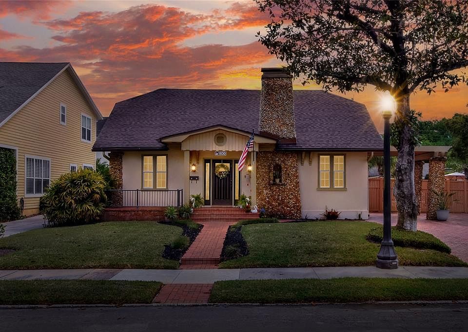 RARE opportunity to own a charming historic home in the coveted Beacon Hill neighborhood!! Nestled on a double lot, this unique home features an eloquent union of historic charm and modern amenities. The outdoor oasis is complete with a POOL and GUEST HOUSE! The main home (2,117sqft) features 3 spacious bedrooms and 2 updated bathrooms. Stepping off the brick front porch and through the front door, you will immediately notice the abundance of natural light pouring into the dining/living room combo space. Detailed mill work, high ceilings, crown molding, and wood floors are featured throughout. Double French doors lead to the master bedroom, complete with en-suite bathroom. Top features include separate toilet, walk-in shower with rain head, pebble mosaic tile and exposed local river stone, dual sink XL vanity and double closets. The gourmet kitchen features a gas stove, single-basin apron sink, wine cooler, and stone counters with an oversized island. A custom glass Dutch door at the rear of the home leads to a fully-enclosed sun room with A/C, perfect for soaking up some rays while lounging or cultivating spring seedlings. The outdoor space is a true oasis, evoking resort-style vibes. A newer privacy fence fully encloses the yard. Enjoy a refreshing splash in the pool by day and gather close to share laughs around the fire pit by night. The guest house (400 sqft) is featured on Airbnb and rated as a guest favorite! With recent updates like a newer roof (2019), AC (2020), guest house mini split (2022), tankless hot water heater (2021), and electric car charging port under the single bay porte cochére, this meticulously maintained home is a rare GEM! Schedule your showing today to seize this extraordinary opportunity to own a piece of Lakeland history! Visit www.beaconhillgem.com for more information about this rare find!