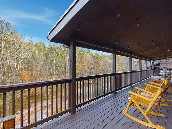 Discover relaxation in this stunning, freshly renovated 4-bedroom, 2-bath cabin on the tranquil banks of Dunn's Creek! This cabin has only been available on Airbnb for just 10 months and is already boasting 33 glowing reviews with a 4.85-star rating! Nestled on over 5 acres of unrestricted waterfront land, this cabin is not only a getaway for relaxation but also offers the exciting potential for expansion with a separate block foundation already in place! On the main level, you have a large master bedroom with a private deck and an oversized master bathroom. There are 2 other bedrooms with a shared bathroom, as well as a large open living, dining, and kitchen area. The rear deck wraps around one side of the cabin and overlooks the large creek below! Upstairs, you can find the 4th bedroom outfitted with 4 single bunk beds, a bonus room equipped with a futon trundle bed, and a loft space featuring an air hockey table and a roll and score arcade game! The owner has invested well over $150,000 in both aesthetic enhancements and essential structural maintenance updates, proactively addressing common owner neglect. The renovations encompass new stainless steel kitchen appliances, high-quality fixtures, stunning granite kitchen countertops paired with a chef-grade sink, and a stacked washer/dryer. The upgraded master bathroom features a custom tile shower that enhances the overall experience and comfort of the home. The new durable commercial-grade roof was built to impress, featuring a standing seam design along with fascia and gutters equipped with gutter guards to minimize maintenance and protect your investment from pesky carpenter bees. You can unwind in the new 7-person hot tub, complete with lighted jets and water fountains, all easily controlled remotely by the user. A high-efficiency 80-gallon hybrid water heater offers remarkable energy savings. In addition, a full crawlspace encapsulation with enhanced joist support ensures durability and comfort. The home is further enhanced with a whole-home water filtration system that includes ozonating, oxidizing filtration, and UV treatment for pure, clean water. For a further aesthetic enhancement, a new solid, nail-down hardwood floor graces all three downstairs bedrooms with beauty and style. A newly graded and paved driveway welcomes you, complemented by the new decking, which includes structural reinforcement, creating an inviting outdoor space for gatherings and relaxation. Foundation protection was made a priority by the recent excavation work and integration of a French drain system designed to effectively intercept and redirect surface and ground water away from the foundation. This gorgeous cabin is more than just a property; it's an investment in lifestyle, relaxation, and potential. With its impressive improvements and breathtaking waterfront location, it offers an unparalleled opportunity to embrace the mountain getaway you've always dreamed of owning. Call and schedule a showing today!