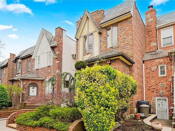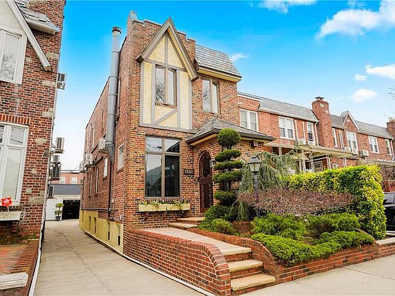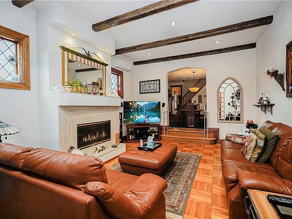First time on the market in over 30 years, this turnkey Tudor-style home is a rare find in the heart of Marine Park. Featuring 3 spacious bedrooms and 2 full bathrooms, this beautifully maintained property offers timeless charm with modern upgrades. Enter inside to find original hardwood floors, soaring 11’ ceilings, wood burning fireplace and five efficient Fujitsu split AC/heat units for year-round comfort. The updated kitchen boasts stainless steel appliances, perfect for home chefs. The spa-like upstairs bathroom includes a massive shower and a luxurious extra-deep Kohler Underscore Vibracoustic tub with heated water, light therapy, and an LCD display for the ultimate relaxation experience. The fully finished basement has extra space that can be used as a home gym, recreation room or an extra bedroom. It is equipped with a split unit (heat and A/C). There is also a full bathroom in the basement. A new rubber roof (2019, recoated 2024) ensures peace of mind for years to come, and don't forget the detached garage with extra high roof that can be used for parking and storage as well. Enjoy summer days on your rear porch with a retractable Sun-Setter awning, ideal for BBQs and outdoor lounging. All this, just minutes away from Marine Park, shopping, transportation, and top-rated District 22 schools.