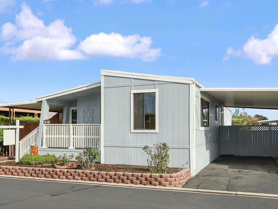 This home is located in a 55+ older community. Highly sought-after El Rancho Senior Community in Manteca, offering a quite comfortable living environment! Recently remodeled with new paint, flooring, bath remodeling and appliances. Outside siding was replaced & painted. New interior and exterior paint. Property offers a private patio area with fully fenced backyard for privacy and enjoyment! Park is very well kept and situated within minutes from shopping, restaurant & freeway access. Come and enjoy this unit that is unique in design and offers plenty of possiblities to spend your retirement days in a very welcoming community!