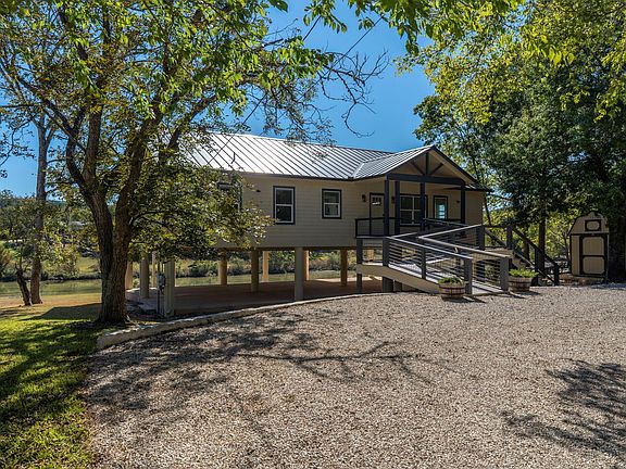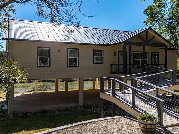 Welcome to one of the finest stretches of the Blanco River in Wimberley, Texas with gentle sloping access to constant clear deep water. Recent major renovations include custom wood Bora Bora 7.5” plank flooring, Idaho Quartzite flooring in bathrooms and laundry, Misterio Quartz countertops throughout, dark bronze standing seam metal roof, water filtration and conditioning system. Additional improvements include landscaping with irrigation and approximately 2,000 SQFT of outdoor living space with custom wheat colored concrete below the house and walkway. Newly installed custom smart shades with motorized window treatments, push button controls, automated timer control, phone app control and voice control are all features included plus the system can be integrated with all major smart home systems. Schedule your appointment today to see firsthand how majestic the views, setting and atmosphere make you feel right at home.