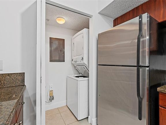 Beautifully updated and well-maintained LAKE VIEW 2nd-floor condo has it all! Peaceful lake view, 3 bedrooms with new vinyl flooring, the living area with tile flooring, well appointed and tastefully updated kitchen, and the dining area off the living room. The screened lanai features a direct view of the lake and fountain as well as views of the master bedroom and living room. Napoli amenities include a fitness center, sand volleyball, tennis court, air-conditioned racquetball court, billiards room, a large community pool, and guest parking. Napoli, a gated community, has a great location, 10 minutes away from downtown and lovely beaches, near the Kings Lake Plaza for shopping and dining. A one-car detached garage is available at $150/month