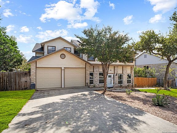 Tucked in a convenient location near Loop 1604 and Highway 151, this charming 2-story home offers both comfort and space-with no HOA and energy-saving solar panels! Featuring 4 bedrooms and 2.5 baths, it's designed with a neutral color palette and high ceilings that create an open, airy feel. The family room is the heart of the home with a stunning floor-to-ceiling brick wood-burning fireplace-perfect for cozy nights in. The kitchen boasts stainless steel appliances and flows seamlessly into the family room and formal dining area, ideal for both daily living and entertaining. The primary suite is conveniently located downstairs and includes an en suite bath for added privacy. Upstairs, you'll find three additional bedrooms plus a spacious game room or second living area offering endless versatility. Step outside to a large backyard complete with a concrete patio and storage shed-ready for weekend barbecues, play, or relaxation. With quick access to Sea World, shopping, and local dining, this home perfectly blends comfort, convenience, and lifestyle-now with the reduced energy bills thanks to the installed solar panels!