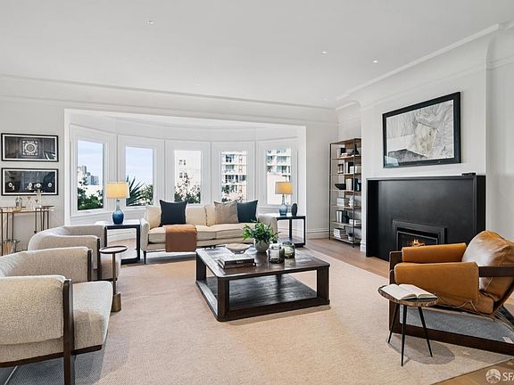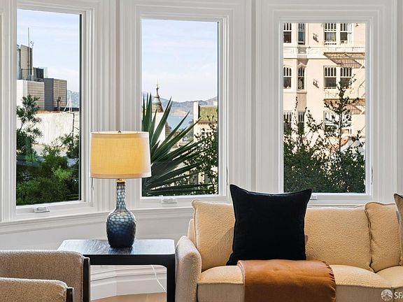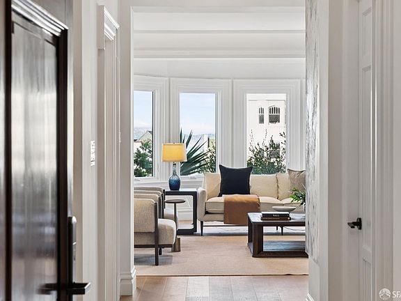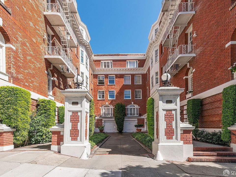 Expansive interiors, high ceilings, hardwood floors and modern finishes are highlights of this 3BR/3BA + DEN residence, with partial bay and Russian Hill views, and overlooking the tranquil zen-like rear garden. The open concept living and dining rooms feature window bays and seating nook. A gourmet kitchen includes Thermador and Miele appliances, separate butler's pantry, custom cabinetry, quartz counters. Bedrooms are ensuite, baths enhanced by designer stone, tile accents and contemporary fixtures. System upgrades include new plumbing, wiring, flooring and finishing. Individual thermostat-controlled radiant heating, Radio Ra custom lighting, dual-glazed windows and modern gas fireplace. In-unit laundry room has stacked washer/dryer, work sink, counters and cabinetry. Shared amenities include an elegant lobby with intercom and camera entry, stained-glass windows, spacious elevator and garage access with assigned parking & storage. Dog-washing station along the service entrance. Conveniently located near Lafayette Park with shopping, dining and services on Fillmore, Union, and Polk Streets. A meticulously renovated half-floor apartment, one of only nine in a distinguished courtyard building designed by renowned architect C.A. Muessdorffer circa 1917, seismically updated in 1997.