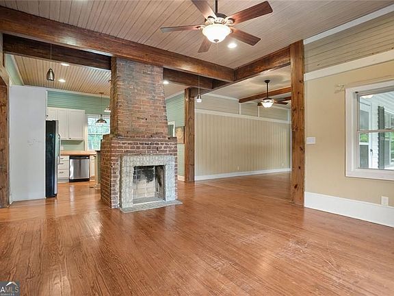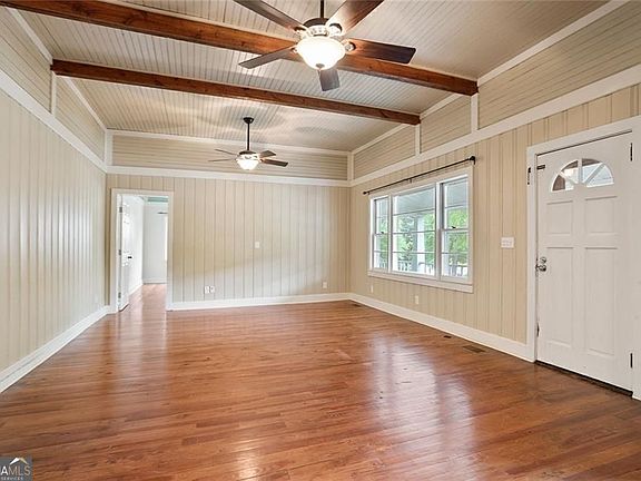 OWNER FINANCING AVAILABLE! 5.25 acre level lot! This adorable and thoughtfully preserved farmhouse blends historic charm with contemporary updates. Featuring a classic white exterior accented by traditional black shutters, a distinctive standing seam metal roof and a welcoming front porch, this home is ready to capture your heart. Inside enjoy 10 foot ceilings and timeless architectural details. Original features such as the double sided non-functioning fireplace, 3/4 inch by 4 inch beaded pine walls and heart pine flooring honor the home's historic craftsmanship. Enjoy morning coffee or relaxing evenings on the expansive covered back porch. Surrounded by mature trees including oak and black walnut, lush greenery, and flowering shrubs, the property offers peaceful privacy just minutes from local amenities. Whether you appreciate historical character or envision adding your personal touch, this home offers endless possibilities. Outside entry basement is a hidden gem, with tons of space! Seller is offering owner financing to qualified buyers.