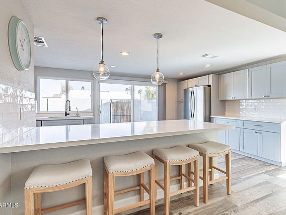 This is an unbelievable opportunity to live in one of the most sought-after areas in the Valley! This move-in-ready home features wood-look tile floors, fresh carpet, and an open floor plan with vaulted ceilings. The gorgeous kitchen boasts white cabinetry, quartz countertops, a subway tile backsplash, and stainless steel appliances. The bathrooms are updated with modern vanities and a master shower with stylish tile surrounds.