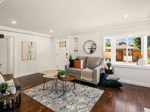 Welcome home to this darling Seahurst bungalow! The 8,400 sqft flat, sunny, fully fenced corner lot includes raised garden beds, mature trees, and a fire pit. Inside you'll find a mix of classic details and modern updates, from the gorgeous hardwood floors to the well-appointed kitchen. Living room features a wood-burning fireplace. Modern kitchen has stainless steel appliances and an adjacent dining nook. The two bedrooms are bright and spacious. Remodeled full bathroom includes a skylight. The detached garage has been converted into a flexible space that could be your home office, shop, studio, or more. There you'll find the laundry area as well as storage space. Additional storage in the shed! Don't miss this charmer!