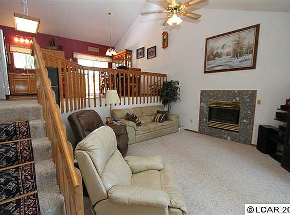 Charming well maintained four bedroom home with one full and two 3/4 baths. Master suite and 2nd large bedroom on main level and 2 bedrooms in basement. Open style design with kitchen and dining overlooking living room. Living room boasts gas log fireplace, vaulted ceiling and lots of natural light. One block from schools.