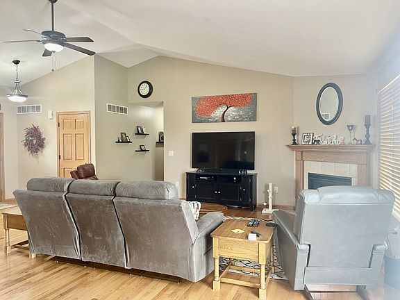 Immaculate 3 bedroom, 2.5 bath ranch. Features include a spacious open floorplan and cathedral ceilings. The living room has hardwood floors, a gas fireplace, dining area and sliding door to exterior. Kitchen breakfast bar with seating, plenty of solid wood cabinets, double sink, and ceramic floor. Primary bedroom with full bathroom and walk- in closet. 2 additional nice-sized bedrooms. Main level laundry. The lower level has a finished family/rec room with kitchenette, electric baseboard heat as well as overhead vents for heat and ac, laminate floor. There is finished 1/2 bath in basement. One Storage area with epoxy floor and egress window and another large storage room. The 2-car heated garage is insulated with drywall. The patio at the back is extra-large and in excellent condition.