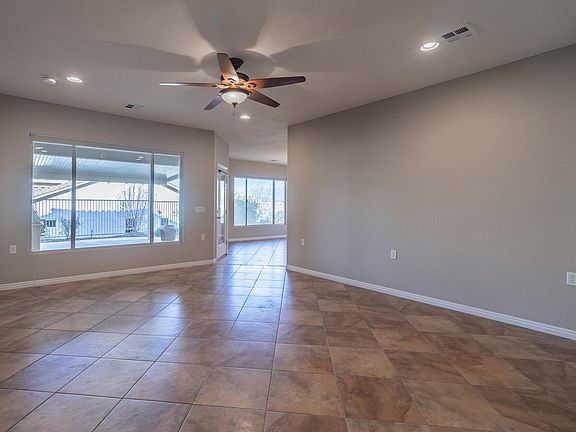 Active 55 +. This 2 bedroom, 2 bath home has a den & a 3 car garage and sits on a corner lot that is higher than the home behind. Main living areas have tile floors with carpet in the bedrooms. Large Kitchen with Zodiak (granite) counters, stained alder cabinets, kitchen island with eating bar, and pantry. Large, well lit dining area with views of Pine Valley Mountain. Primary bedroom features a bay window. Organizers in primary closet. Back yard boasts a large, covered patio with peek-a-boo views of mountains on either side. Washer & dyer included. Now accepting BACK-UP offers only.