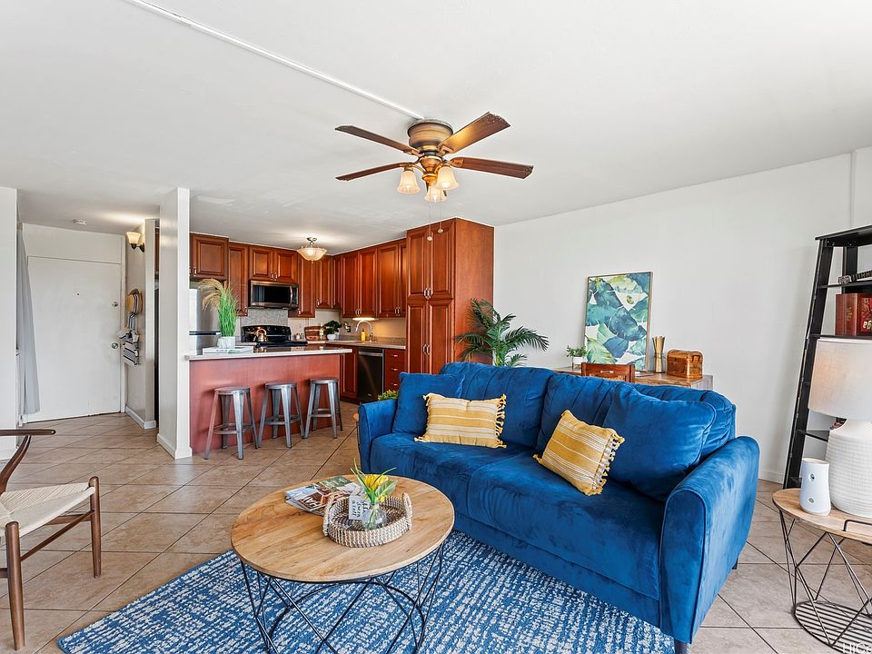 conveniently located just 1 mile from Schofield Barracks gate. This home offers the perfect blend of comfort and convenience, featuring lanai access from the living room and both bedrooms, offering panoramic views of the mountains. Building and elevators are secured with fob access so residents can enjoy peace of mind in this lakeside community. The unit is nicely remodeled with quartz countertops and ceramic tile flooring throughout. 1 parking space included.