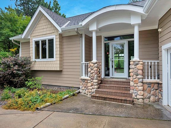 Your Private Northwoods Sanctuary! Welcome to your retreat on Vanduse Lake! Set on 19+ wooded acres with 478’ of shoreline, this custom-built home features 6 bedrooms (septic sized for 4), 4 baths, and a design created for year-round enjoyment. Highlights include a chef’s kitchen with Wolf cooktop, a stunning living room with soaring ceilings, fireplace, and phenomenal lake views, plus a sunroom, dining with wet bar, and expansive decks perfect for entertaining. Enjoy lake views from nearly every room in the house. The primary suite offers a spa-inspired ensuite with heated tile floors, whirlpool tub, shower, a huge walk-in closet, and direct access to the hot tub. Upstairs you’ll find a loft and 3 bedrooms (one with a balcony overlooking the lake), while the lower level adds 2 more bedrooms, a family room with fireplace, in-floor heat, and a second laundry. Recent investments include: roof, furnace, AC, air exchanger, solar panels, Generac generator, and more. Exterior amenities: fenced garden, apple orchard, irrigation system, attached heated garage, and a phenomenal 64x40 pole building with heated shop, to name a few. Bordering public land with direct snowmobile and ATV trail access, this one-of-a-kind property is the ultimate private estate, retreat, or getaway. Additional acreage available. You deserve to make this YOUR PLACE!